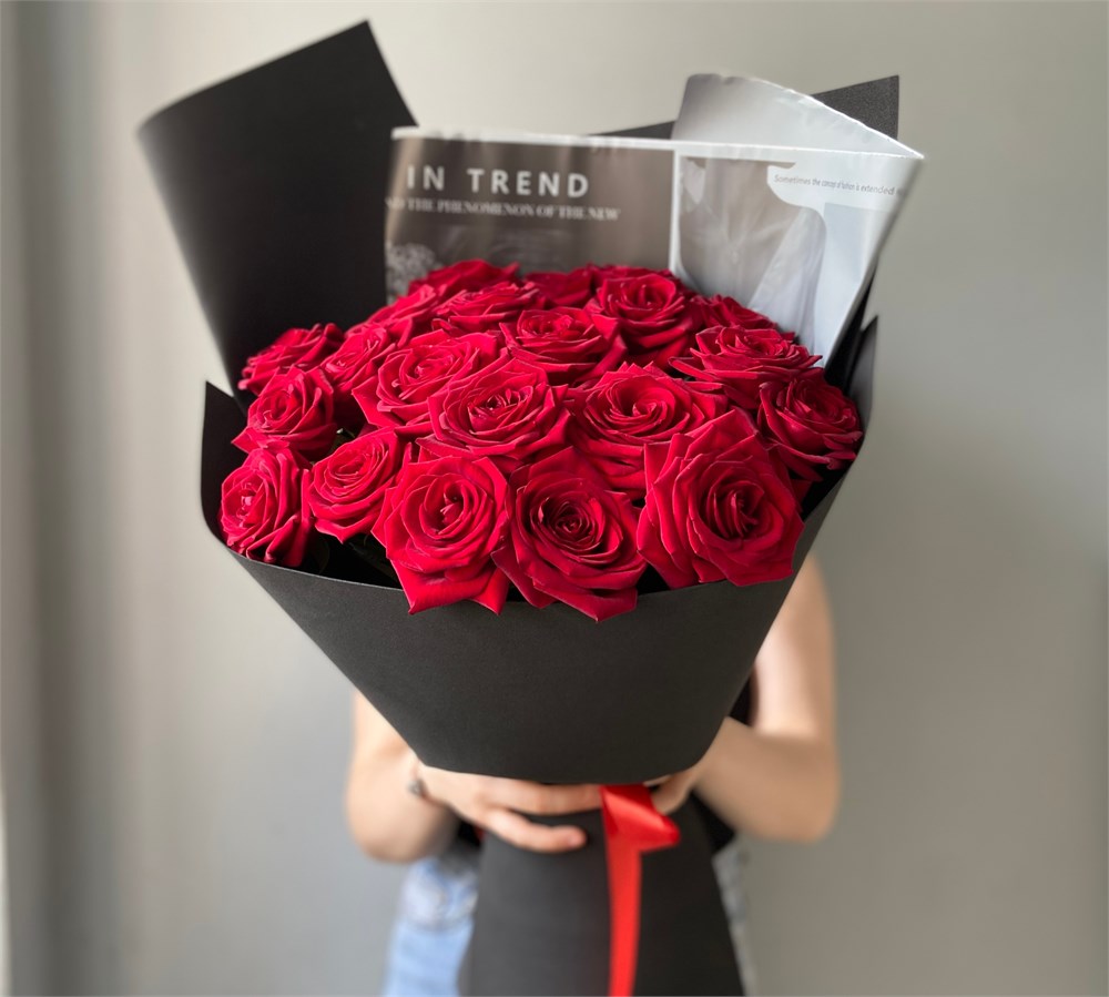 Торжественный букет из 25 роз Ред Наоми